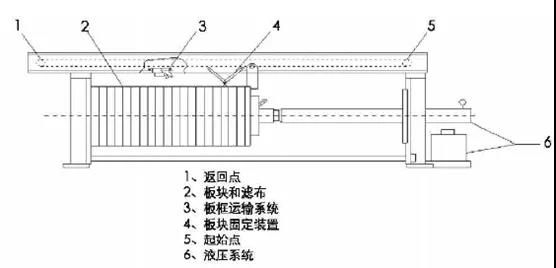 板框压滤机的液压系统主要是提供压力的,当油腔A注油增多时活塞向左运动,压迫滤板使之密闭。当油腔B注油增多时活塞向右运动,滤板松开。