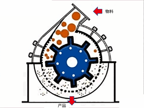 砂石骨料生产线很少用锤式破碎机,虽然工艺简单,但成品率低,易过粉碎,粉状料多,且成品骨料可能会产生微裂纹,抗压强度低,影响骨料的质量,也影响销售和价格,故常作为辅助性制砂设备。
