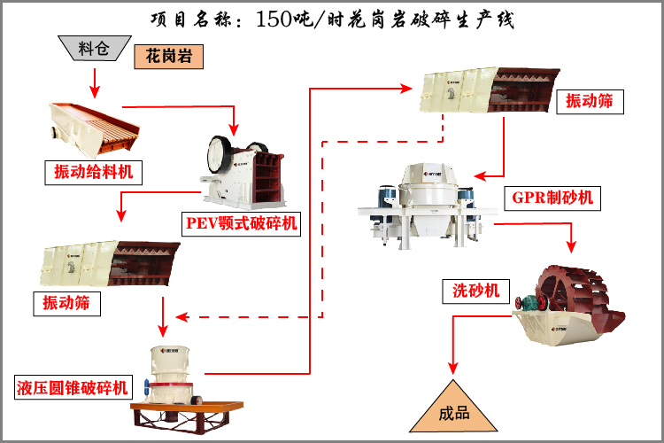【案例分享】150吨/时花岗岩破碎生产线方案