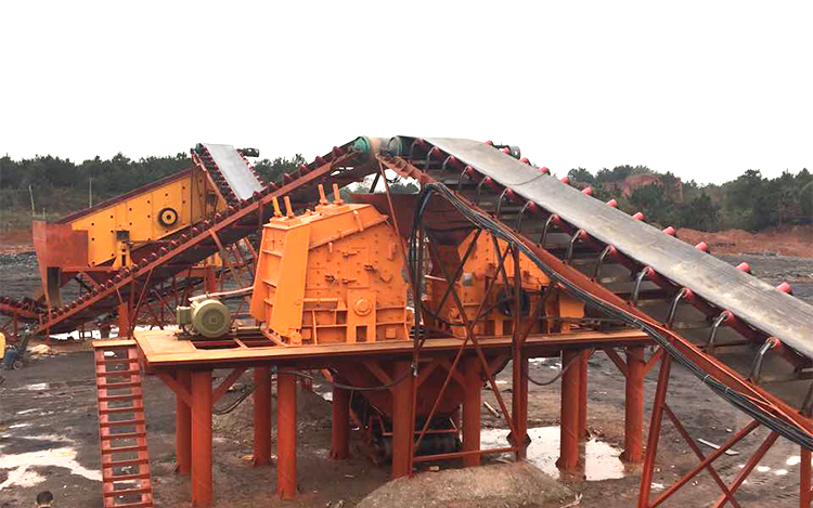 粗碎后的物料由皮带输送机送到反击破进行冲击破碎,PF反击破具有进料口大、破碎腔型高的特点,适应物料硬度高、块度大、产品石粉少,反击板与板锤间隙方便调节,有效控制出料粒度,颗粒形状好。
