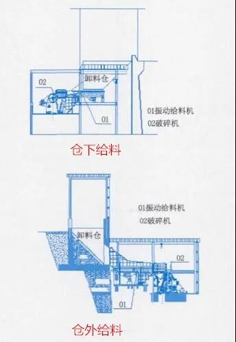 卸料堆的主要形式有仓下和仓外两大类形式,下图所示。