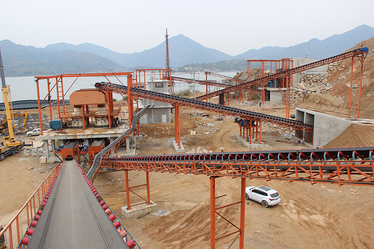 对于给料皮带机,在保证给矿量的前提下,应选择适宜的皮带宽度,确保慢速,以降低带上物料下落时的析离,减小对破碎机给料筒的冲击。皮带宽度较小时,可在皮带全长上安装导料槽,增加带上物料的厚度。圆锥破碎机的给料皮带机设计成可移动的较好,一是便于调整给料点,使物料居中落在破碎机给料筒内;二是便于设备检修时提供足够的空间。