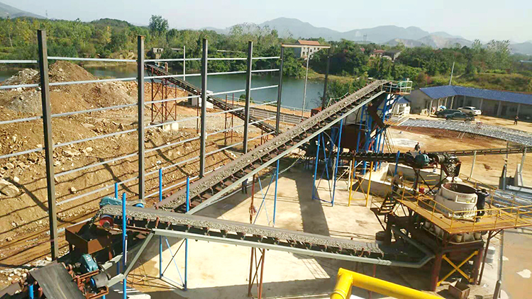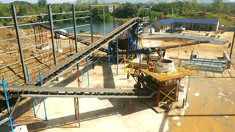 40mm以下物料经洗砂机洗选进入成品堆。