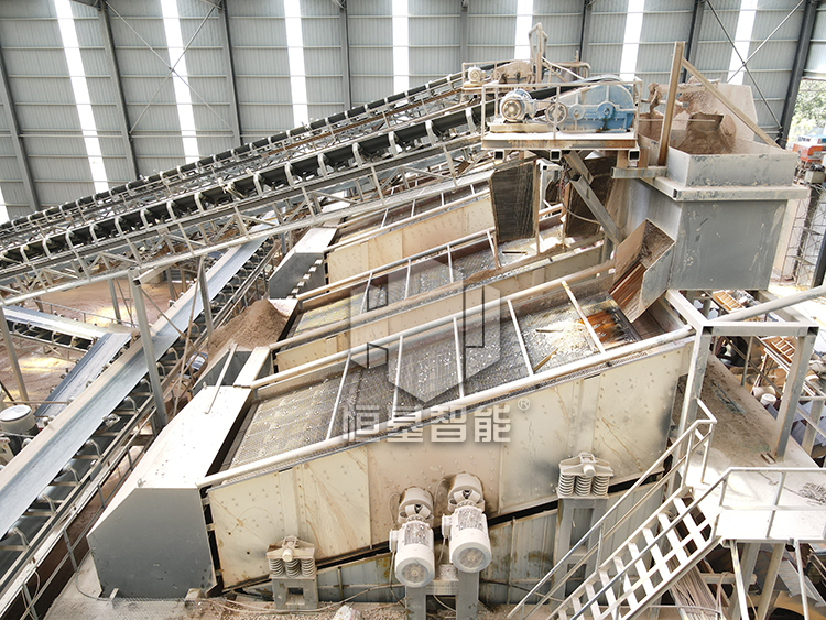 最后,将三道工序满足需求的石料通过胶带输送到振动筛输出,出成品料 。
