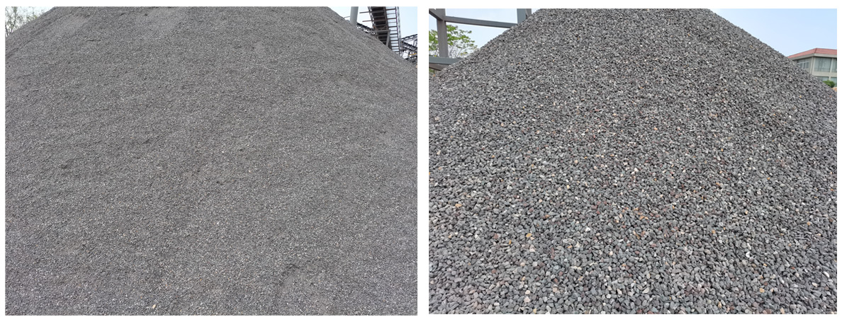 本项目恒基采用双头破设计,满足用户应对含泥量不同的原料,一台鄂破配备洗石机,处理含泥量重的原料,减轻圆锥破碎机负载,并配备双料仓,使主破碎设备达到产能最大化,损耗降低的效果。洗沙部分采用螺旋洗沙机和叶轮洗沙机搭配,先入螺旋洗沙机使泥砂分离,后入叶轮洗沙机,减低细沙流失率,降低细砂回收一体机的负载,洗出的成品砂含泥量低,粒型好看。