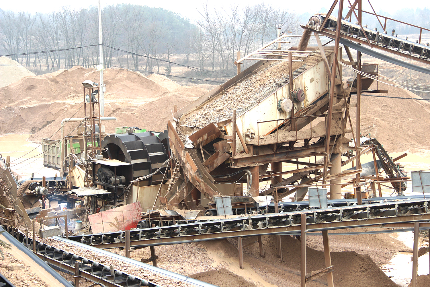 头破选用颚破,二破选用PEX系列小型颚式破碎机进行破碎,并加入细碎腔型的弹簧圆锥进行二次破碎。由于含泥量较大,该项目中加入3台洗砂机和脱水筛,保证砂石品质。